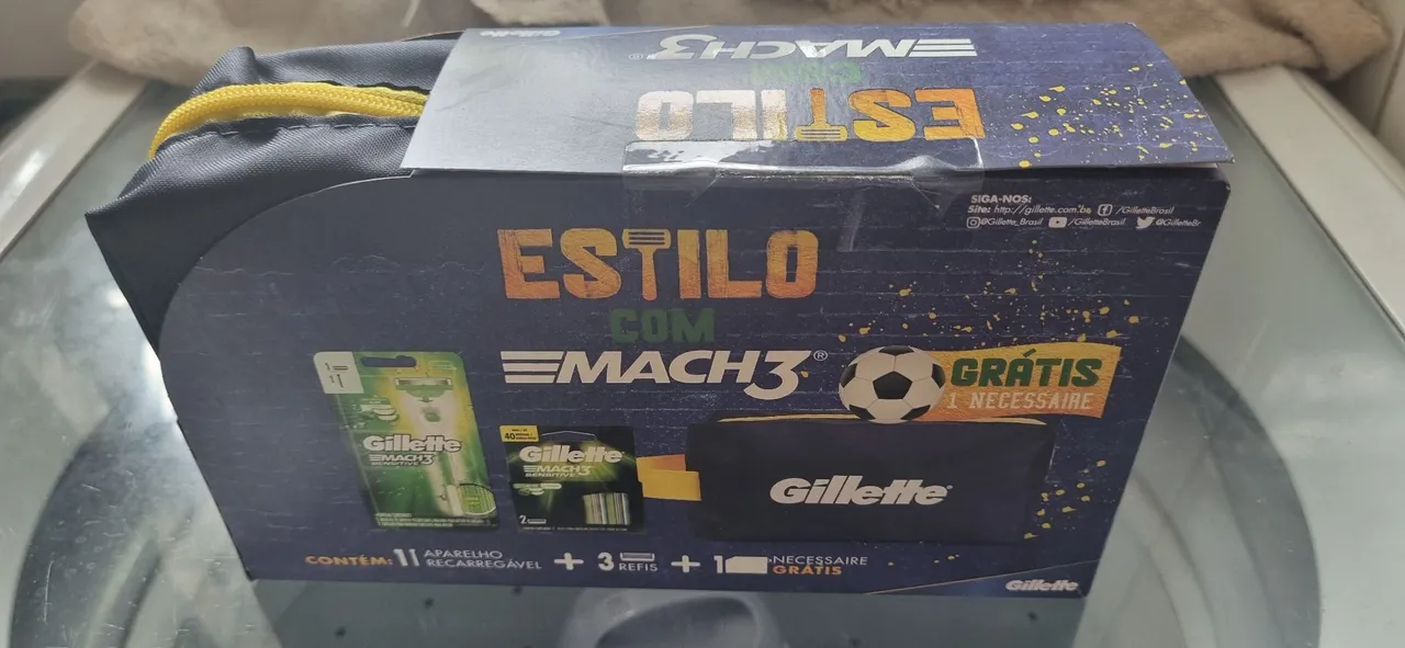 Kit Gillette Mach3 Sensitive, com aparelho recarregável, 3 refis e nécessaire grátis. Para um barbear suave e preciso, aproveite!