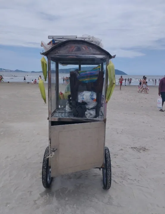 Carrinho na praia do Itararé ponto fixo , na direção do quiosque da Cris