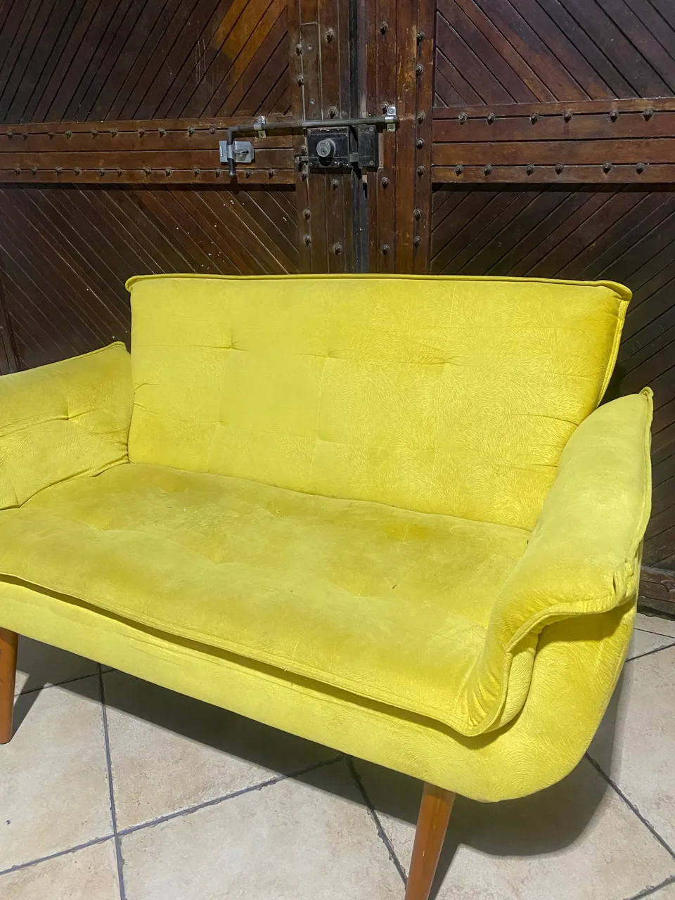 Linda namoradeira amarela para deixar seu ambiente ainda mais charmoso e aconchegante. Perfeita para relaxar e decorar seu espaço!