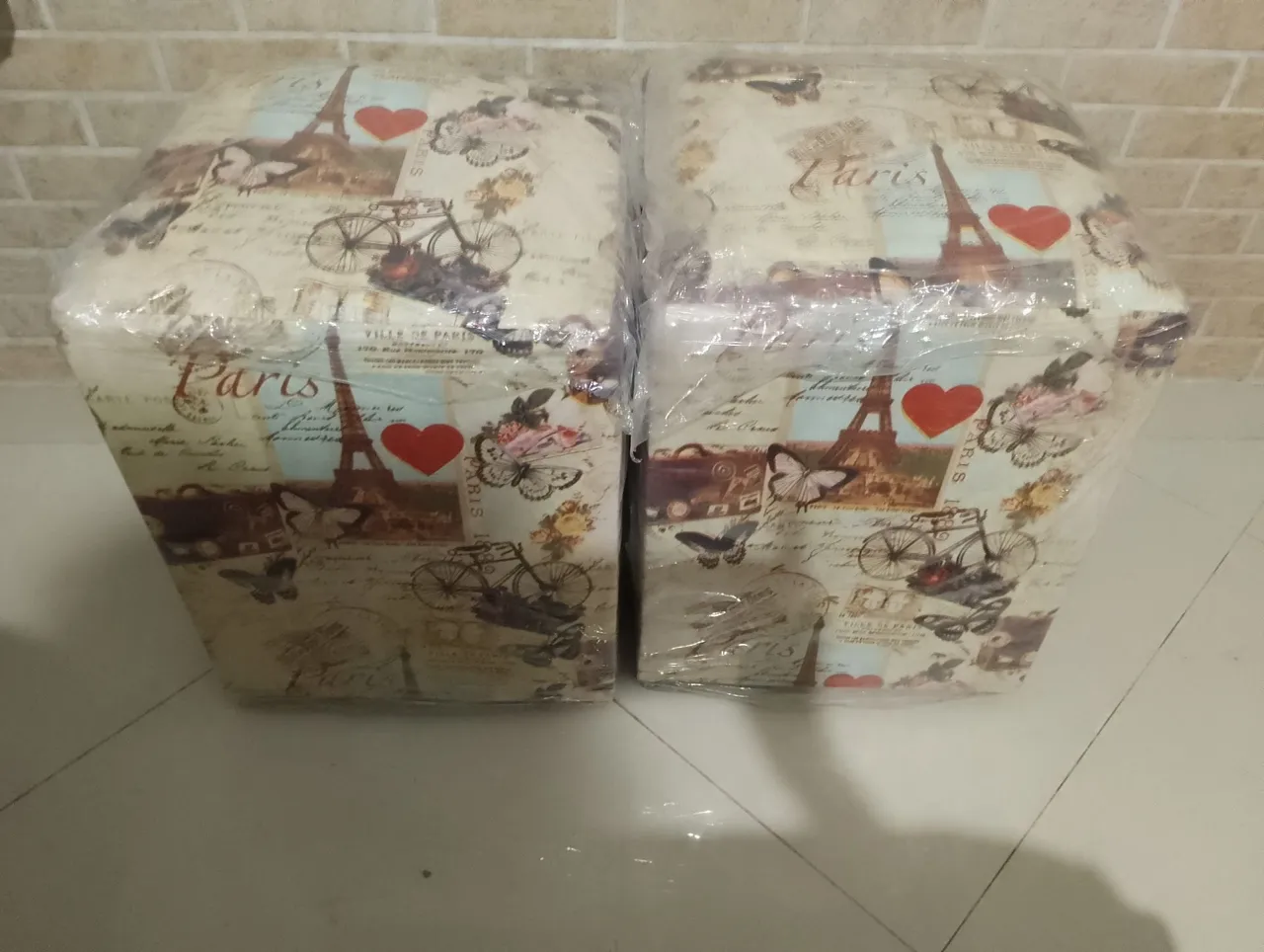 Lindos puffs decorativos com tema de Paris, perfeitos para dar um toque charmoso ao seu ambiente! Medidas 45 x 38 x38