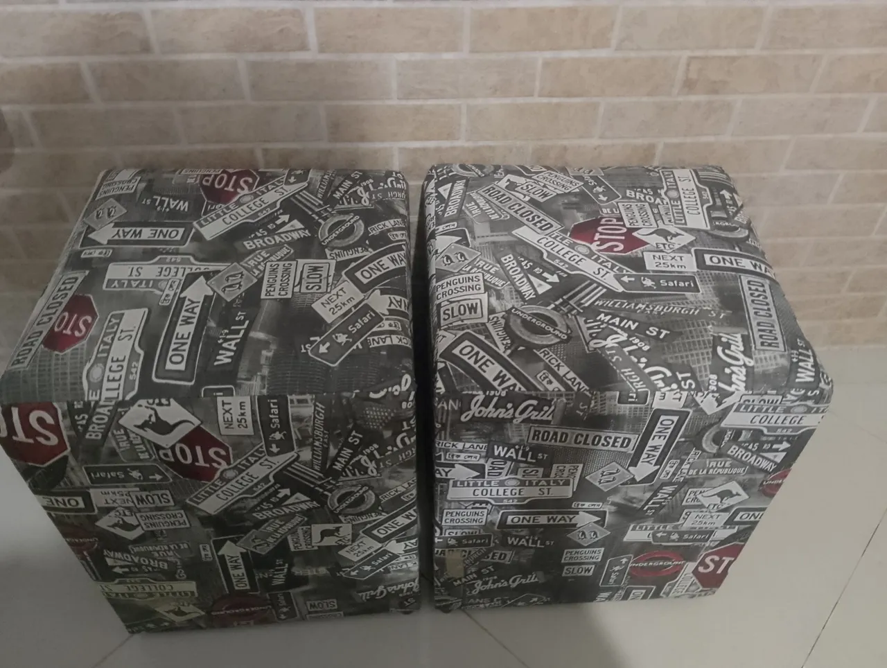 Conjunto de puffs com design moderno e urbano, perfeito para dar um toque especial à sua sala. Conforto e estilo em um só produto! 45x38x38