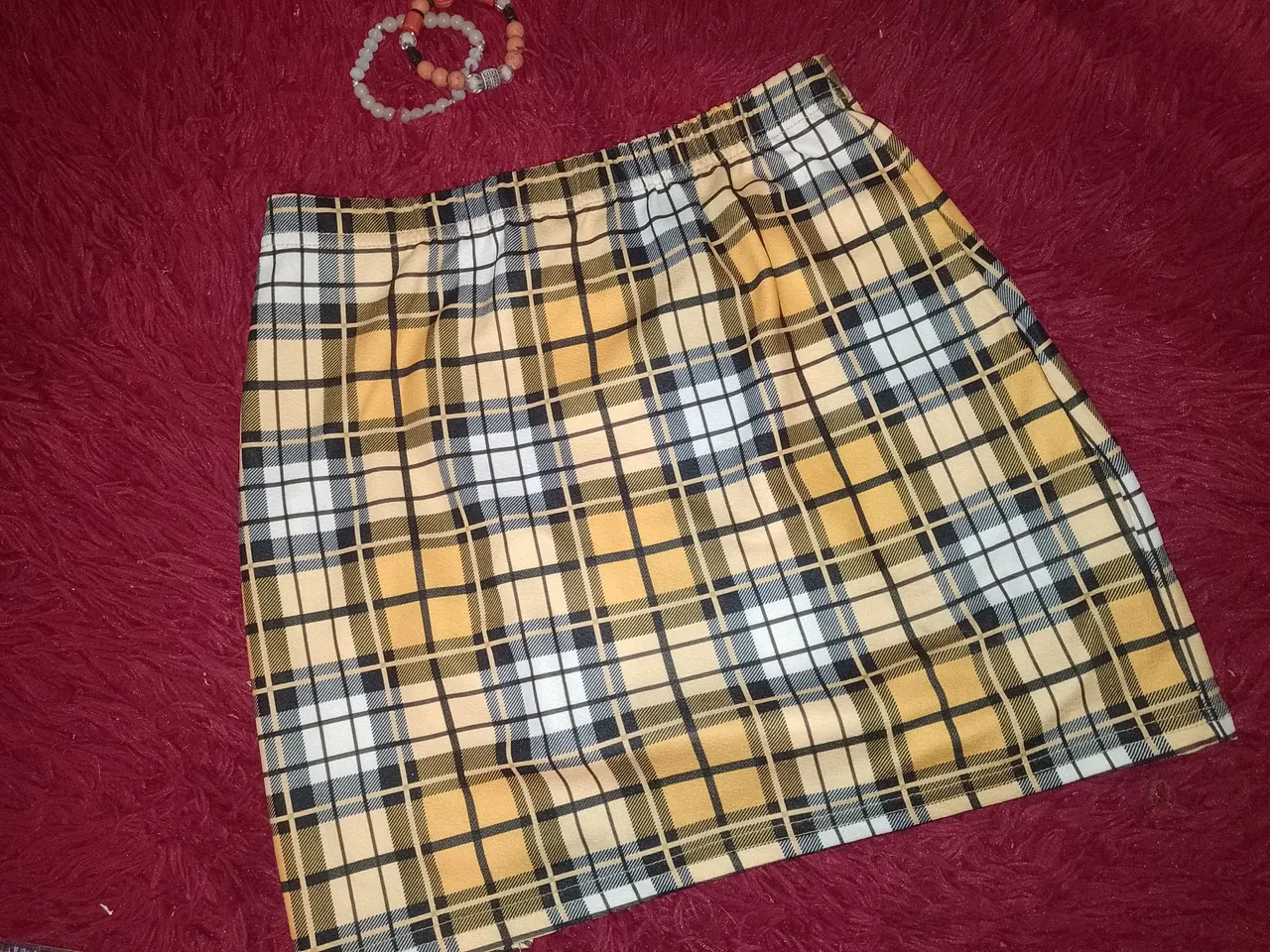 Saia xadrez com detalhes em amarelo, branco e preto, perfeita para um visual moderno e estiloso.