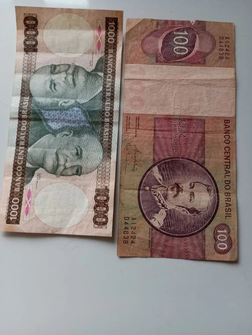Cédulas antigas de 1000 e 100 Cruzeiros, itens de coleção para os amantes de história e numismática. Peças raras e originais, ideais para colecionadores.