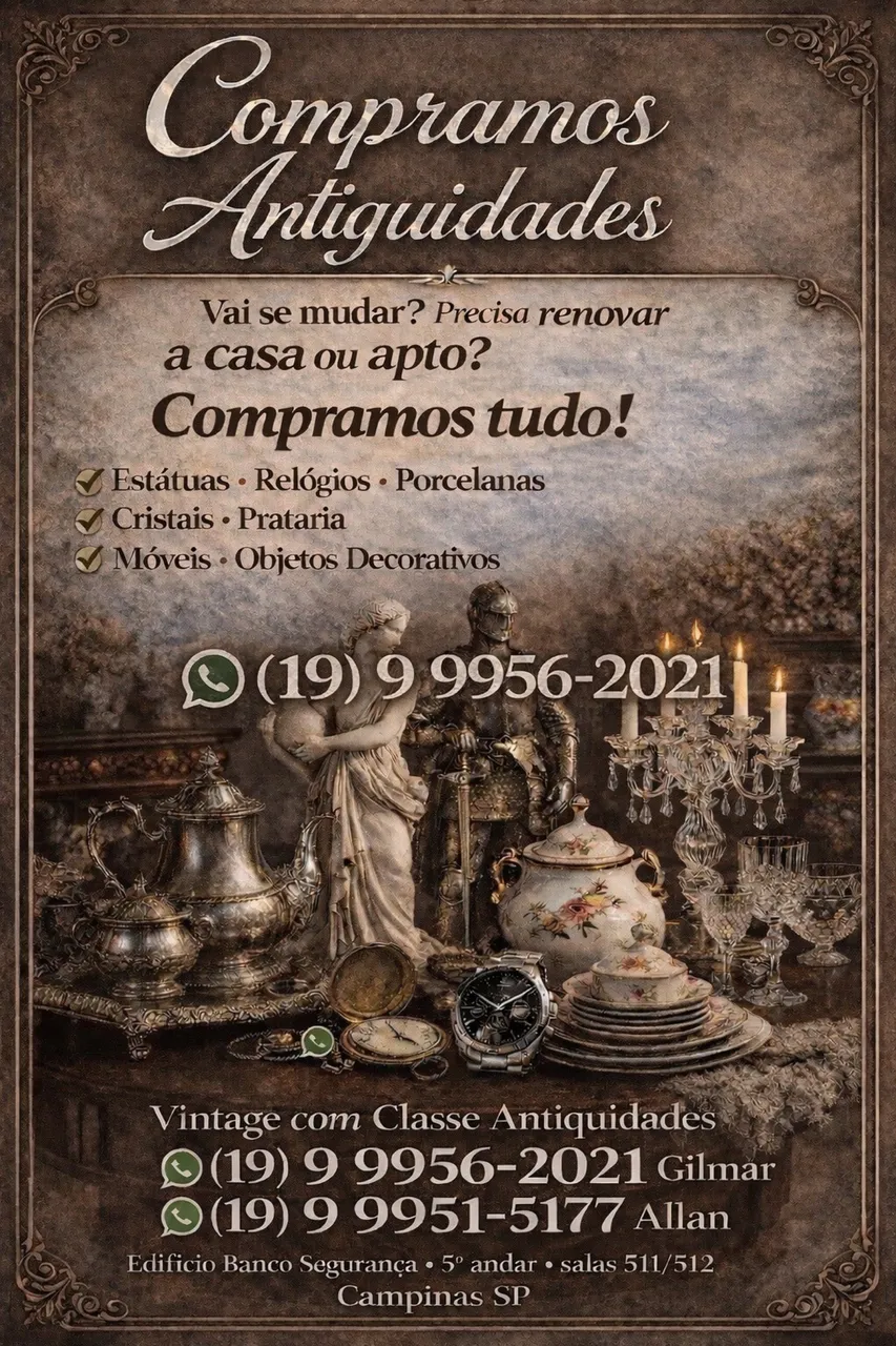 Compramos tudo! Estátuas, relógios, porcelanas, cristais, prataria, móveis e objetos decorativos. Entre em contato e faça uma avaliação!