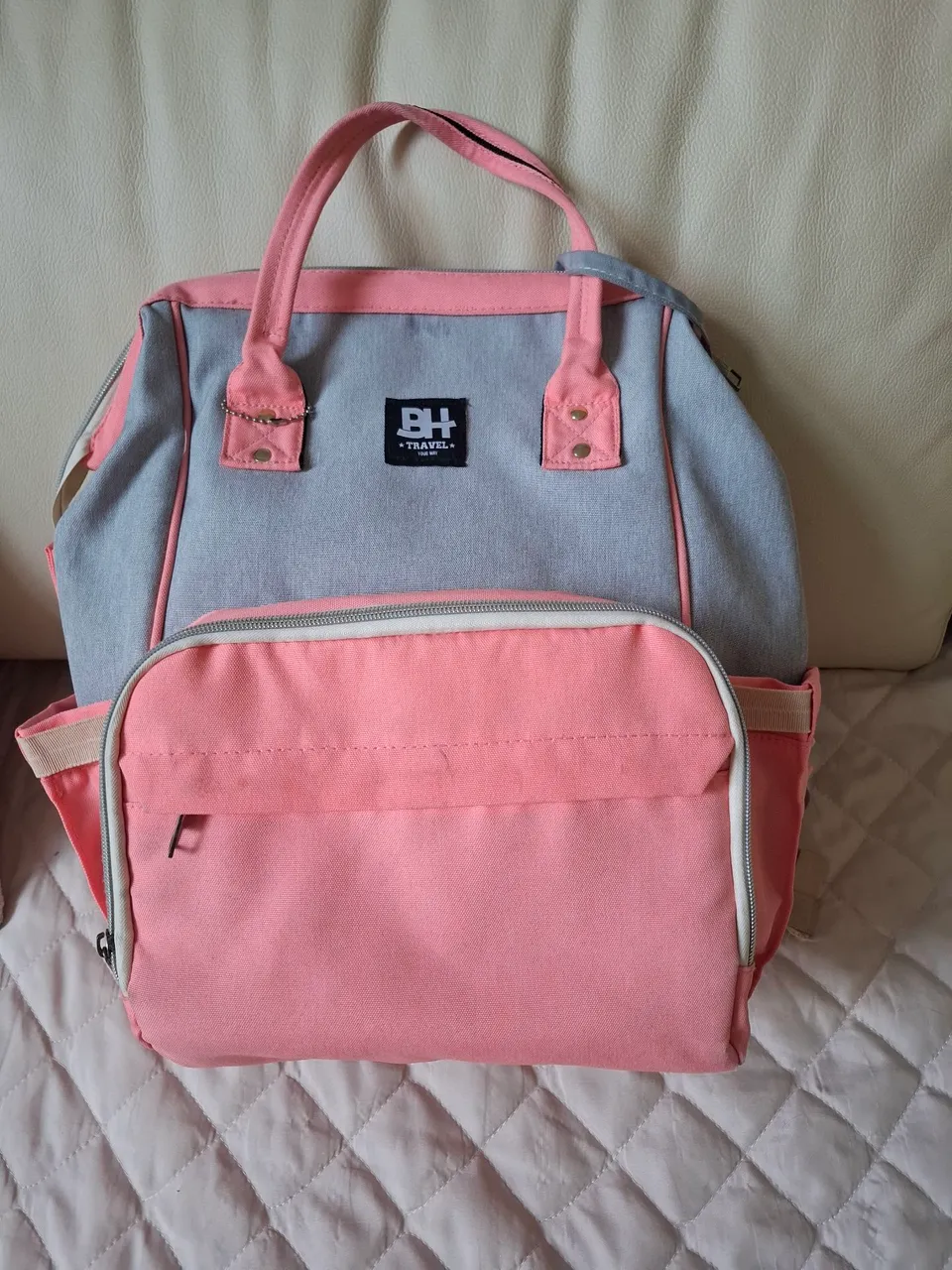 Prática e espaçosa mochila de maternidade, perfeita para levar tudo o que o bebê precisa com conforto e estilo. Design moderno e funcional, ideal para o dia a dia. Com várias divisorias