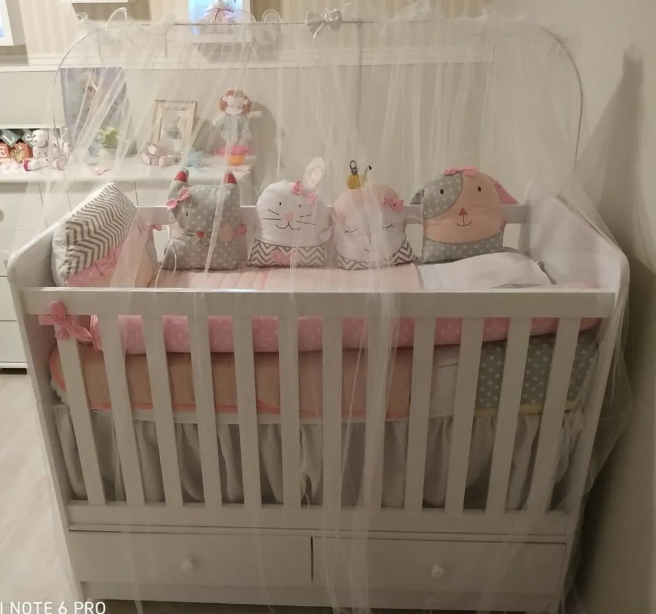 Vai com colchão com capa impermeavel, arco para veu e saia para o colchao quando na altura para recem nascido.