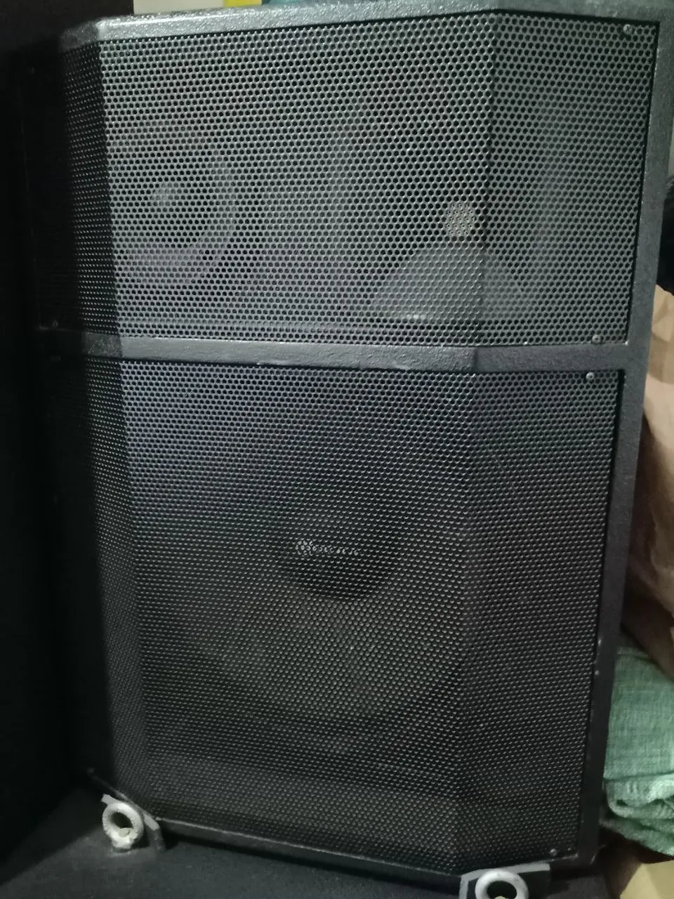 Caixa de som amplificada de alta qualidade, ideal para eventos e festas. Possui design moderno e som potente.