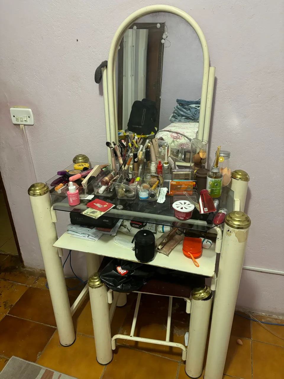 Linda penteadeira com espelho, ideal para organizar seus produtos de beleza e criar um espaço charmoso. Perfeita para maquiagem e cuidados pessoais. Não há avaria Vem com puff Não entrego, tem que vim retirar