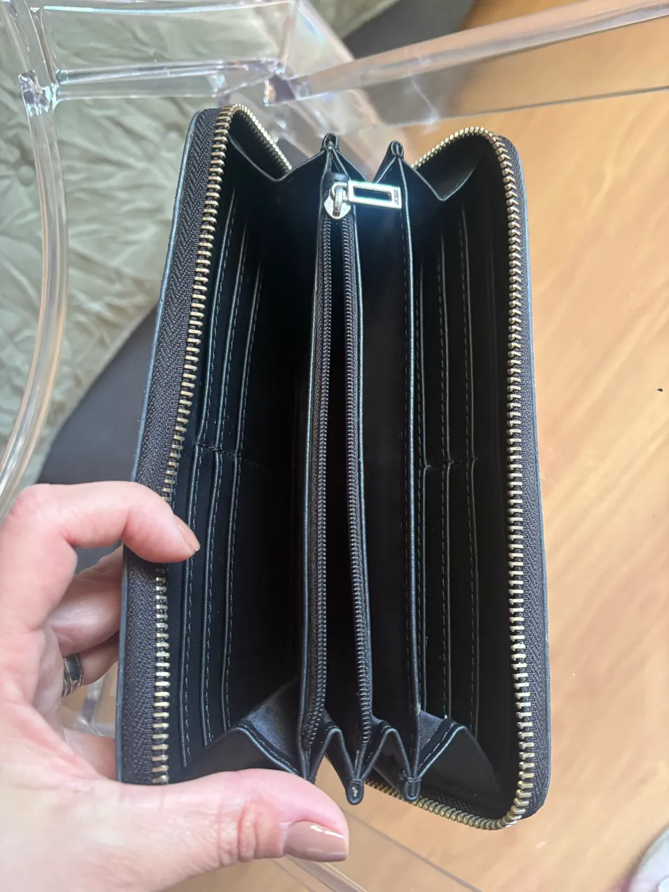 Carteira feminina preta com design elegante e funcional, ideal para o dia a dia. Tamanho 20x10cm