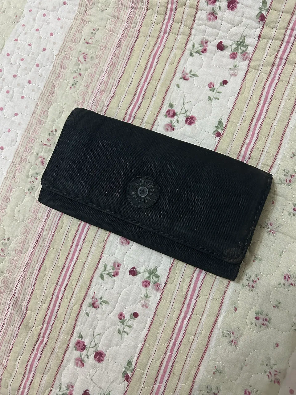 Carteira preta, com vários compartimentos, da Kipling. Usada, porém bem conservada.