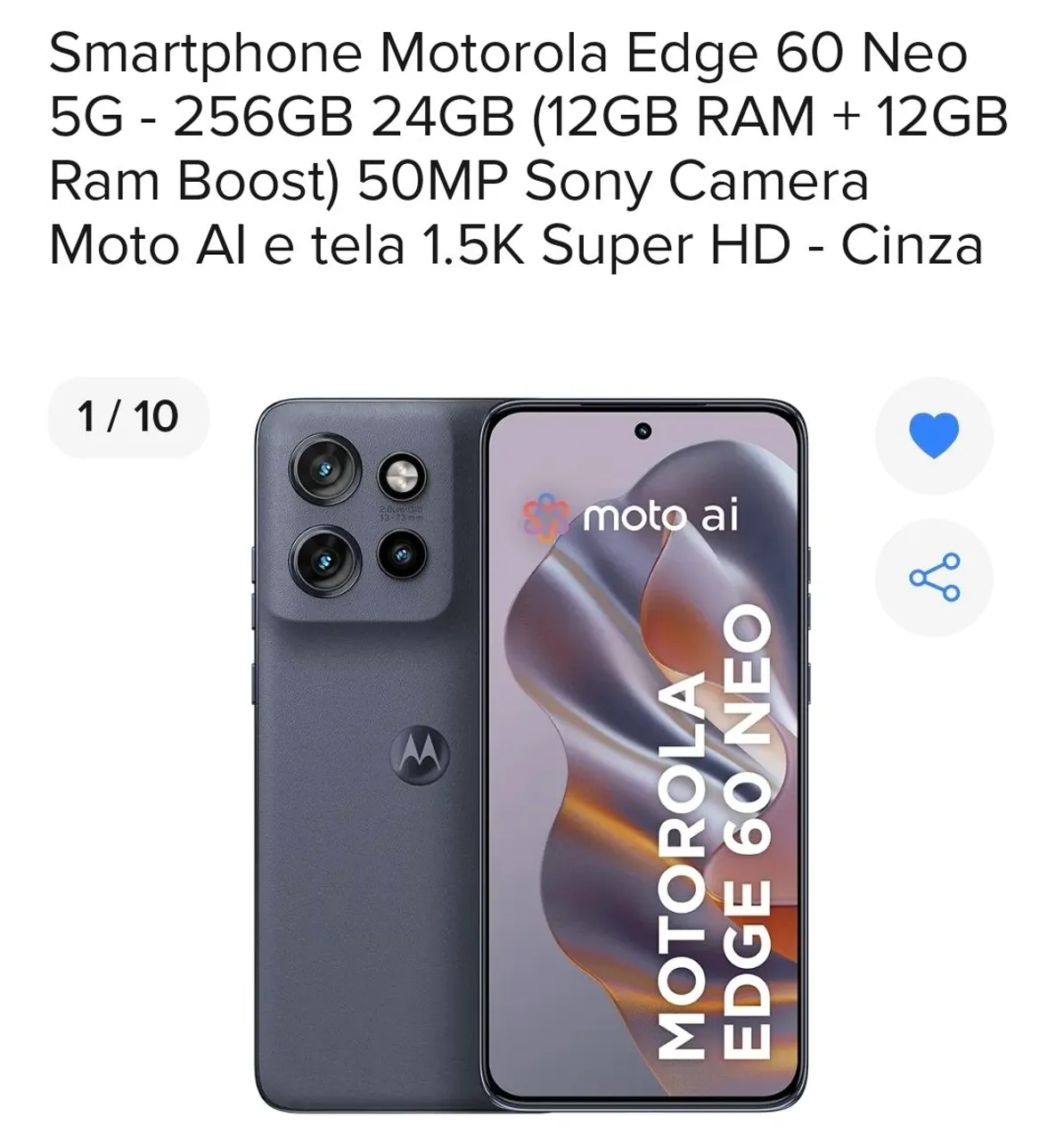 Experimente a excelência com o Motorola Edge 60 Neo! Com tela 1.5K Super HD, câmera Sony de 50MP e design elegante em cinza, este smartphone oferece desempenho e estilo. Desfrute de 256GB de armazenamento, 24GB de RAM (12GB + 12GB Ram Boost) e a inovação Moto AI para uma experiência móvel superior.