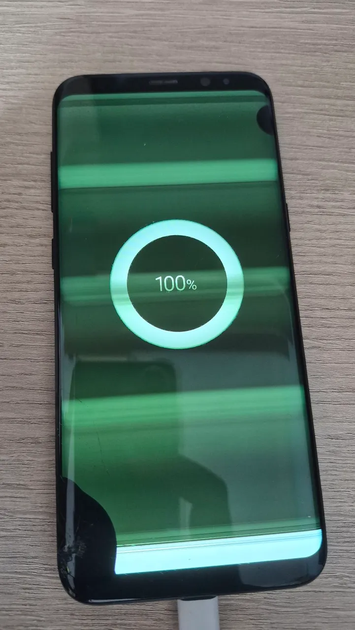 Galaxy S8+ 64GB QUEBRADO, SEM BATERIA, para peças. Display está quebrado, com trinco no vidro, touch não funcional e imagem distorcida. A bateria foi removida. Não liga além da tela de carregamento.