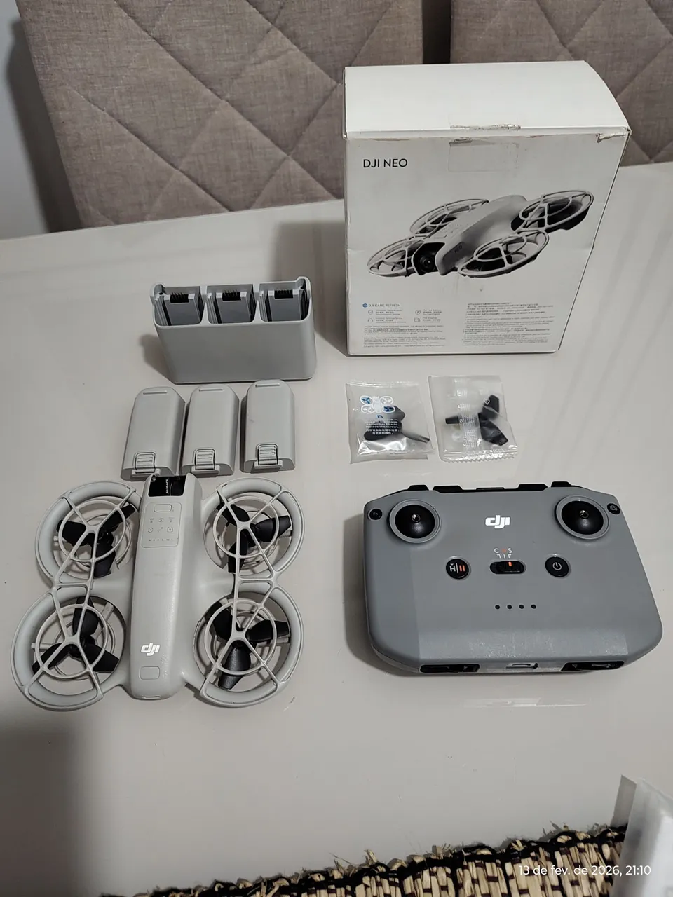 Vendo meu DJI Neo Combo More em estado impecável, poucos voos (menos de 10h totais), super conservado e pronto para uso! Perfeito para iniciantes ou profissionais que querem diversão e qualidade em filmagens aéreas.O que inclui:Drone DJI Neo Combo More completo2 hélices extras (originais)3 baterias (todas em ótimo estado, com ciclos baixos)Hub de carregamento oficial para carregar tudo de uma Vez, características top:Câmera 4K estabilizada, vai junto como acessório o kit de lente ND para melhorar ainda mais as imagens, só ele foi 300 reais. voo inteligente com detecção de Obstáculos autonomia de até 18 min por bateria (com 3 você voa o dia todo!)Fácil de pilotar pelo app, sem necessidade de controle Remoto, peso leve (135g), ideal para levar pra qualquer Lugar. condição: Poucos voos, sem riscos ou avarias. Testado e 100% funcional. Preço: R$ 2.300 ( à vista)
