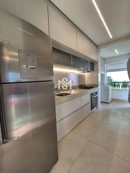 ?Cozinha conceito semi aberto toda planejada e equipada com cooktop , forno, depurador e geladeira