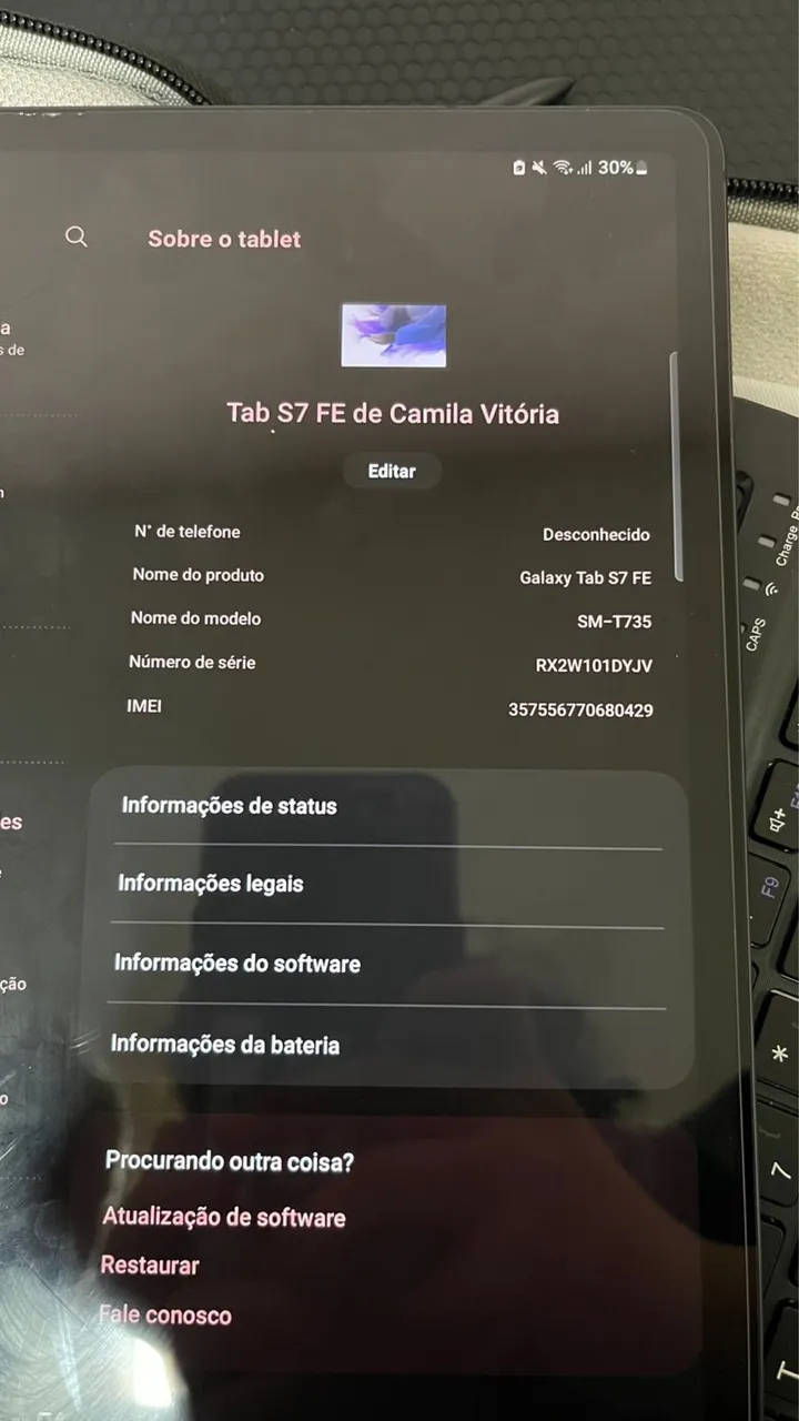 Tablet Samsung Galaxy Tab S7 FE, tela grande (12,4 polegadas), 128gb de memória, acompanha, caneta (Samsung original), carregador USB- C (Samsung original), capa na cor preta, bolsa com divisória, película (já aplicada) e teclado (sem fio).