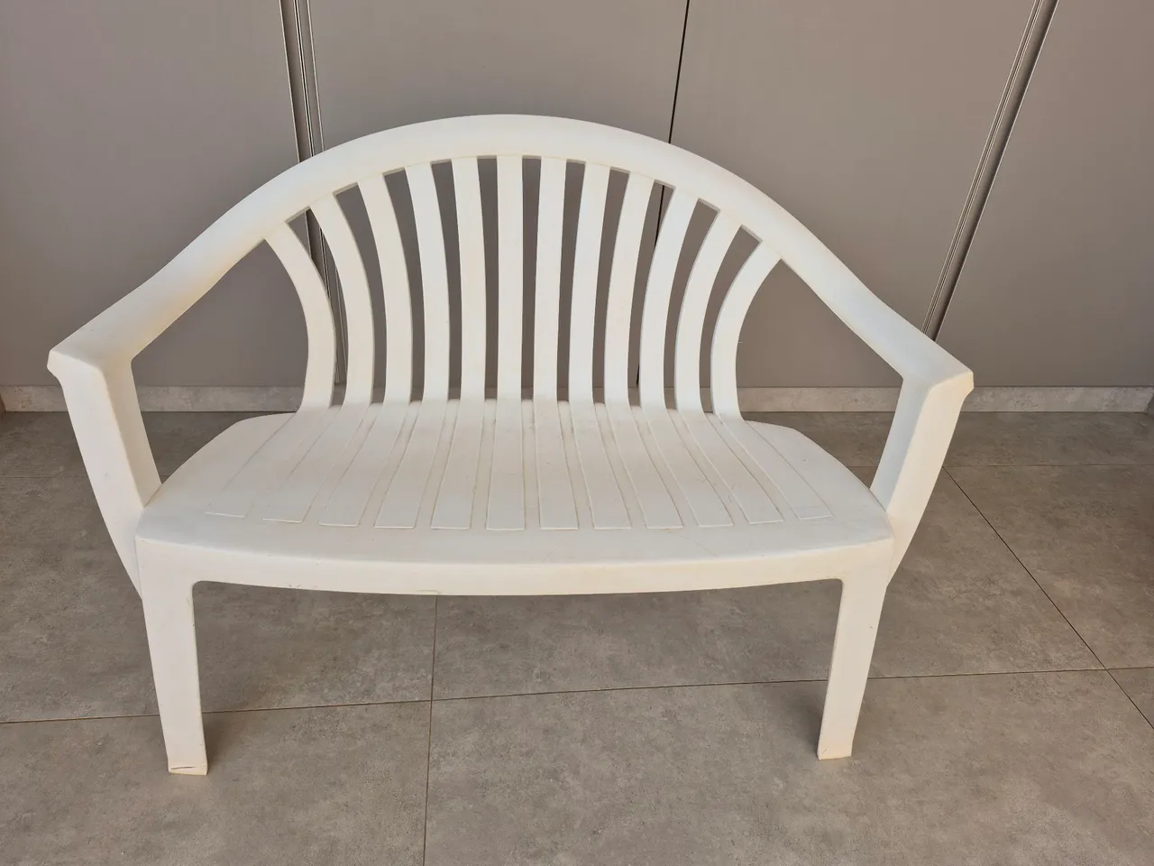 Banco de plástico resistente, perfeito para áreas internas e externas. Design moderno e confortável, ideal para relaxar e aproveitar momentos de lazer.