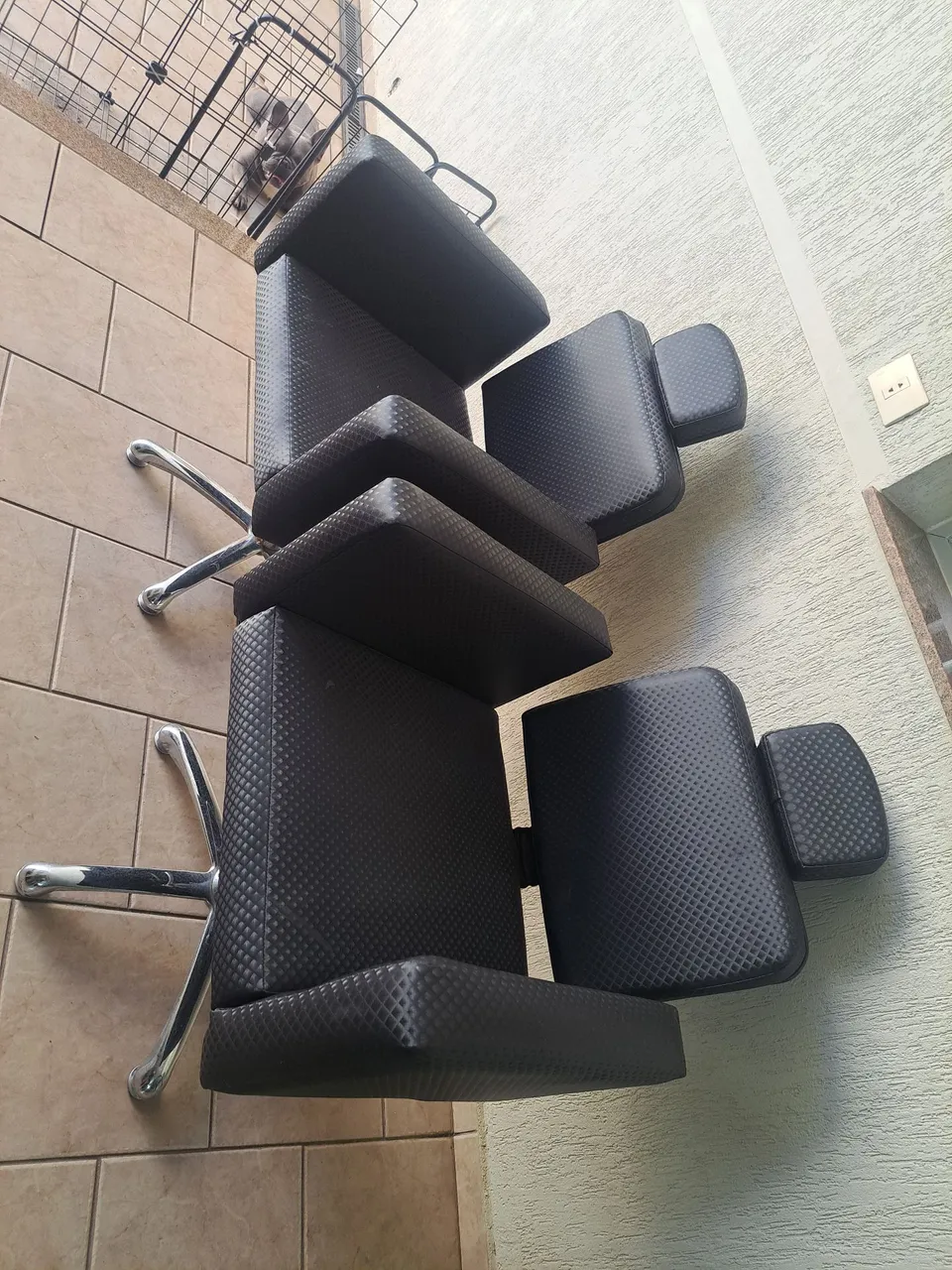Cadeira de barbeiro moderna e confortável, perfeita para seu salão. Design elegante e ergonômico para proporcionar uma experiência agradável aos seus clientes.