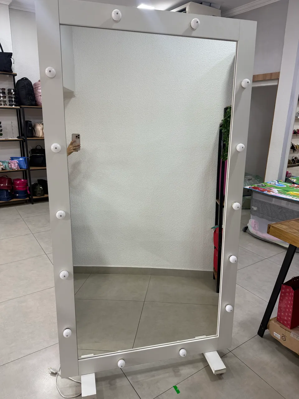 Modelo ótimo para quem vende produtos, ele tem 2m de altura X 1.10m de largura, possui rodinhas e também trava.