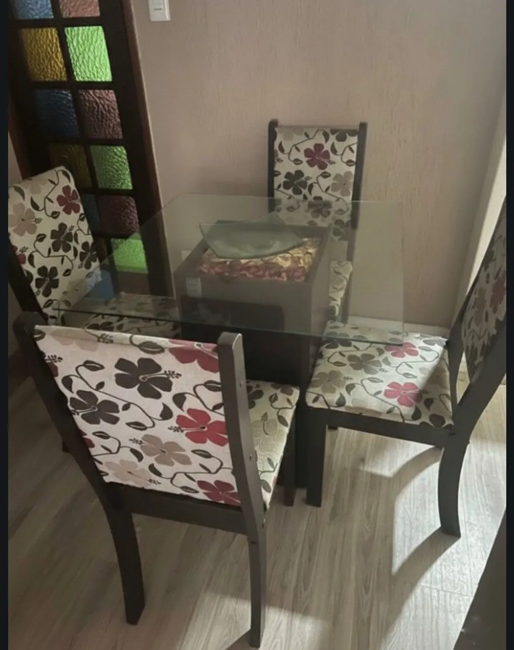 Linda mesa de vidro com 4 cadeiras, perfeita para sua sala de jantar! Design moderno e elegante, ideal para reunir a família e amigos. Adicione um toque de sofisticação ao seu espaço!