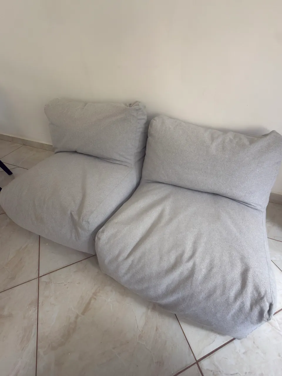 2 puffs alegres da TokStok, perfeitos para relaxar e dar um toque moderno ao seu ambiente. Conforto e design em um só produto!