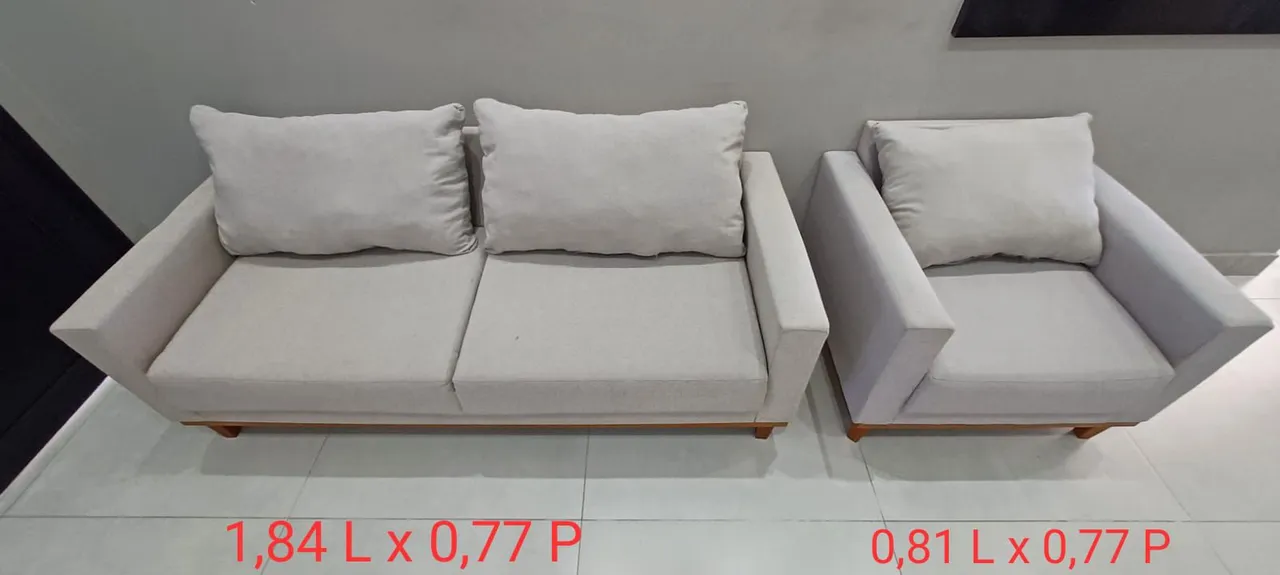 Sofá maior: 1,84 m (L) x 0,77 m (P)
