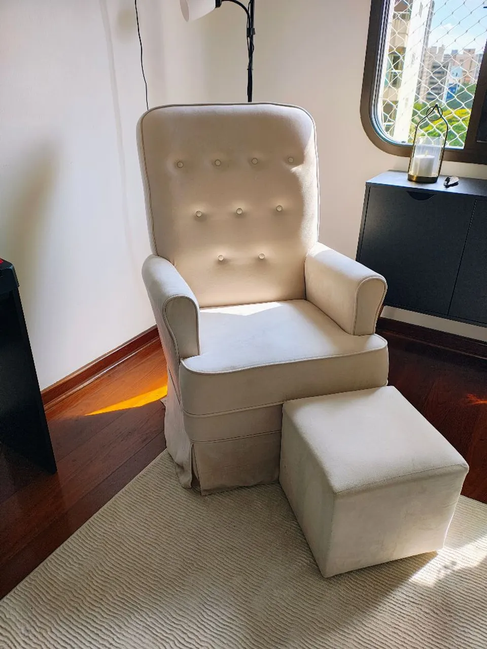 Desfrute de momentos de conforto e tranquilidade com esta poltrona de amamentação impecável. Ela balança, foi pouquíssimo usada (tem 6 meses de uso), sem avarias e ainda acompanha puff. Adquirida na renomada loja Tok Stok.