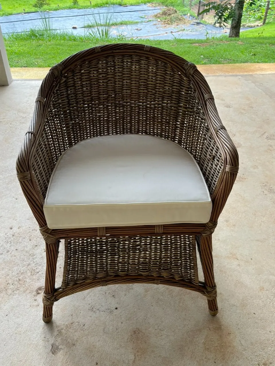 Poltrona em fibra em ótimo estado, assento novo em tecido aquablock. Muito confortável.