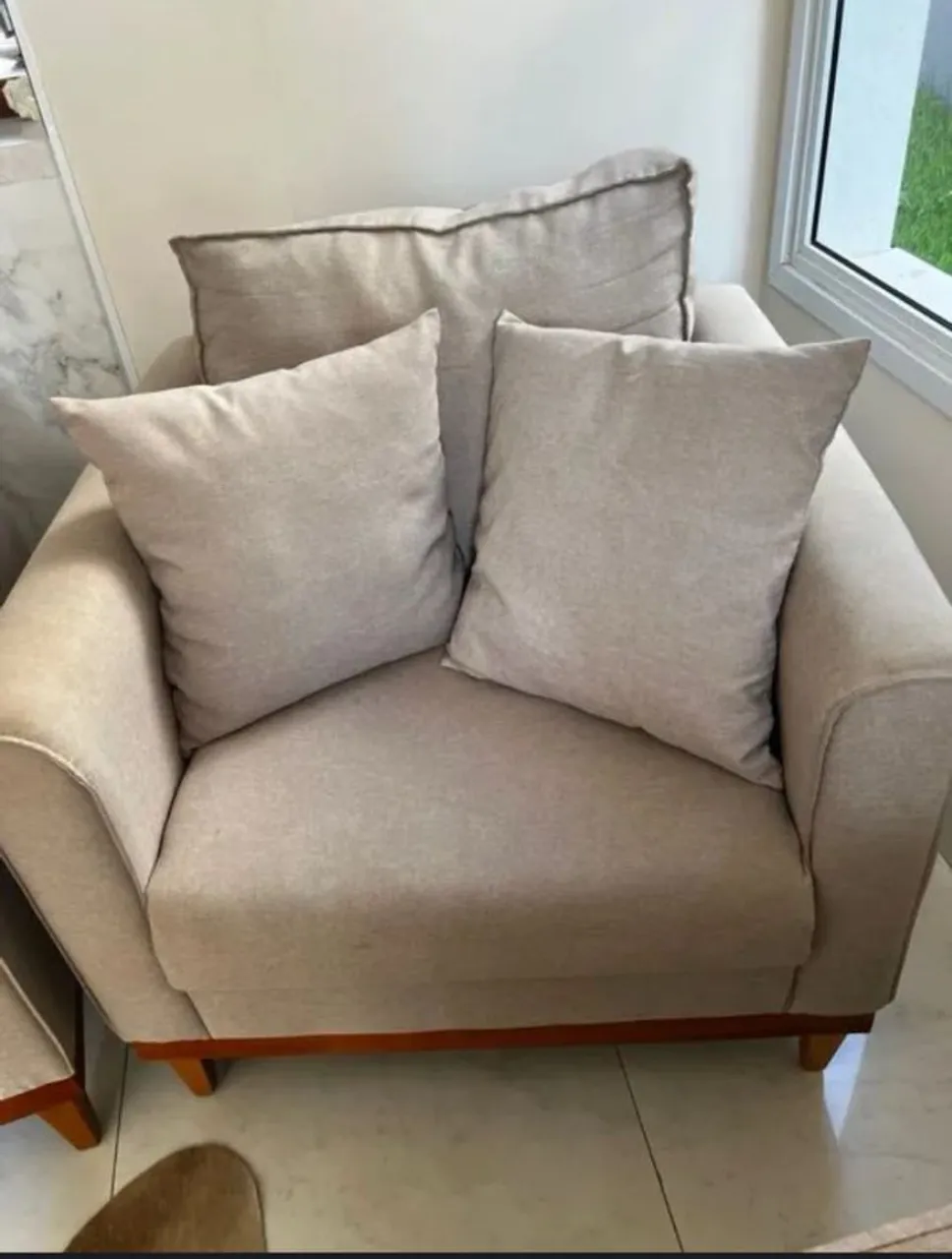 Par de poltronas em linho e pes em madeira De ótima qualidade 450,00 cada