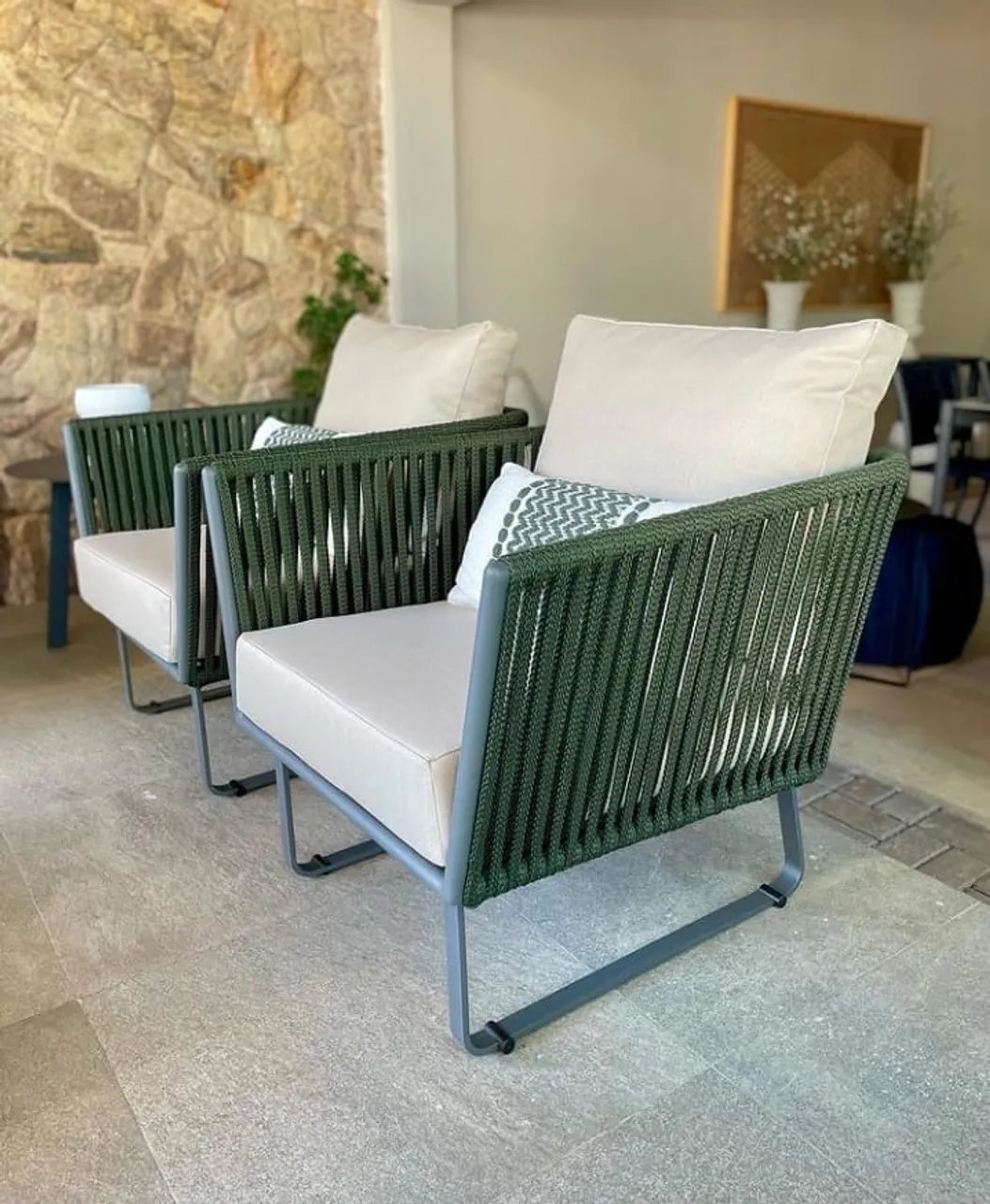 Apresentamos a Poltrona Marés, uma peça que une design moderno e conforto excepcional. Estrutura em alumínio resistente e detalhes em corda náutica, perfeita para relaxar com estilo. Ideal para áreas externas ou internas, adicionando um toque de sofisticação ao seu espaço.