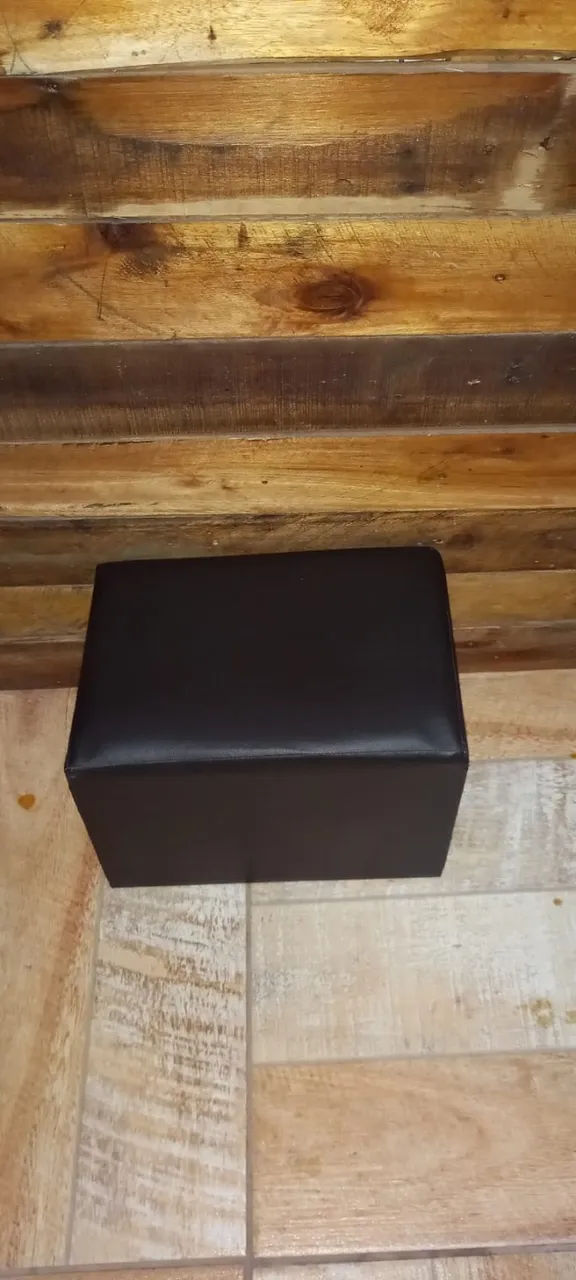Puff Preto de Couro tipo barbeiro kids, perfeito para completar o visual do seu espaço. Design moderno e confortável, ideal para crianças.