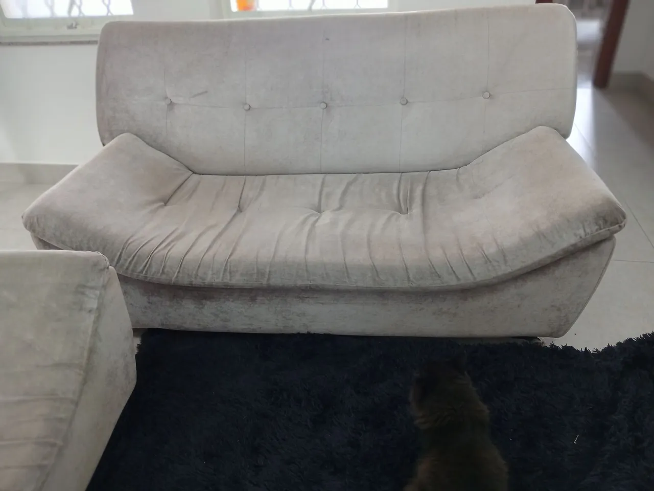Sofá em suede cinza claro para 2 e 3 lugares, design elegante e confortável, ideal para sua sala de estar. Perfeito para relaxar e receber amigos e familiares.
