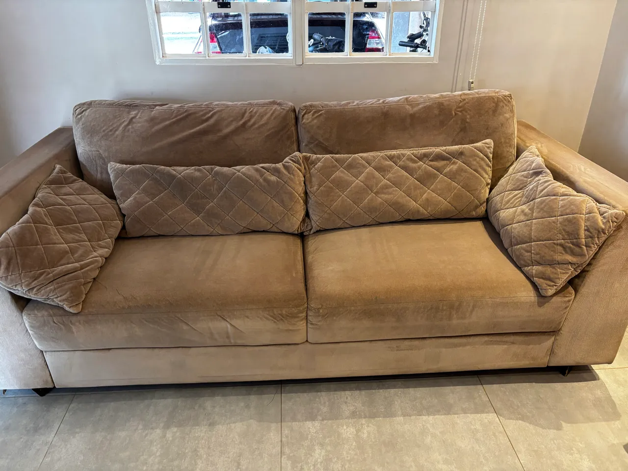 Sofá confortável de 3 lugares, ideal para relaxar e decorar sua sala. Design moderno e elegante, perfeito para criar um ambiente acolhedor.