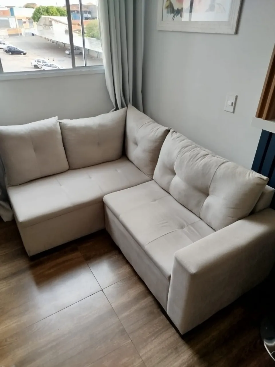 Sofá de canto perfeito para o seu apartamento! Com 1,20x1,80m, este sofá é a combinação ideal de conforto e estilo, otimizando o espaço da sua sala. Design moderno e elegante para transformar o seu ambiente.