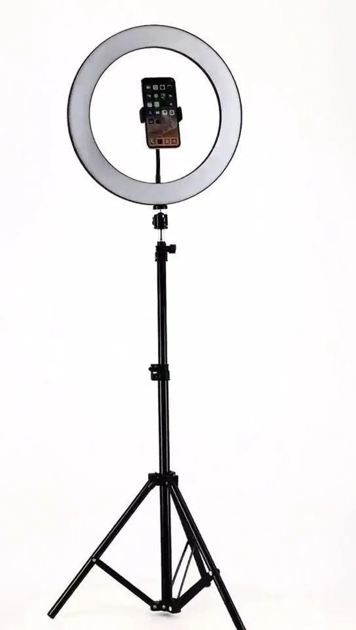Ring light usada uma vez, boa grande funcionando perfeitamente. 3 tipos de luzes acompanha porte celular.