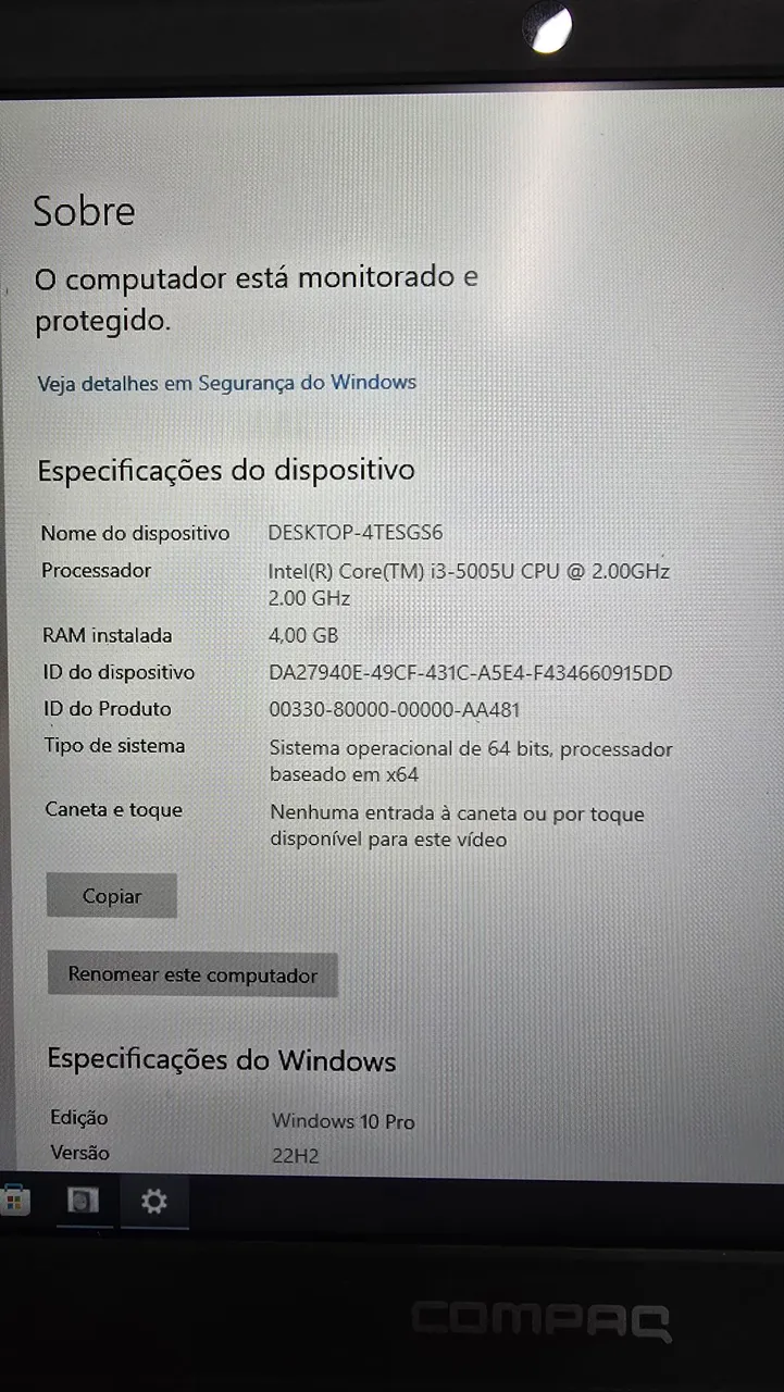 Notebook com processador Intel i3, 4GB de memória RAM, ideal para tarefas diárias e estudos.