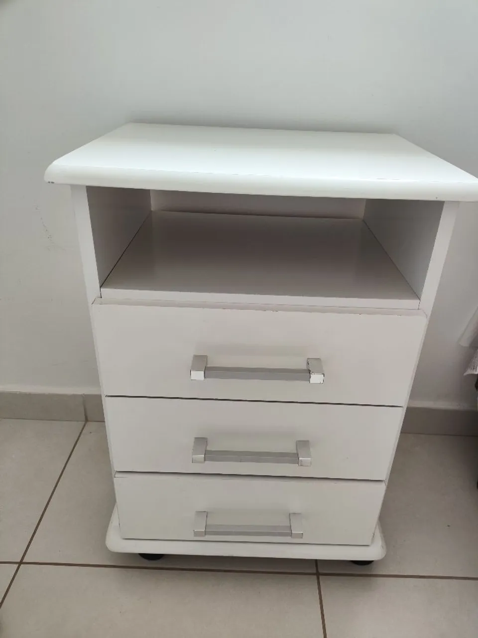 Apresentamos esse lindo criado mudo , com 3 gavetas e ainda um espaço aberto.