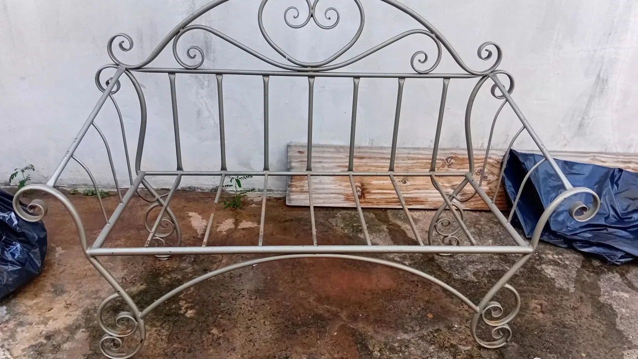Banco namoradeira em ferro, ideal para decorar seu jardim ou varanda. Design clássico e elegante, perfeito para relaxar e aproveitar momentos de lazer.