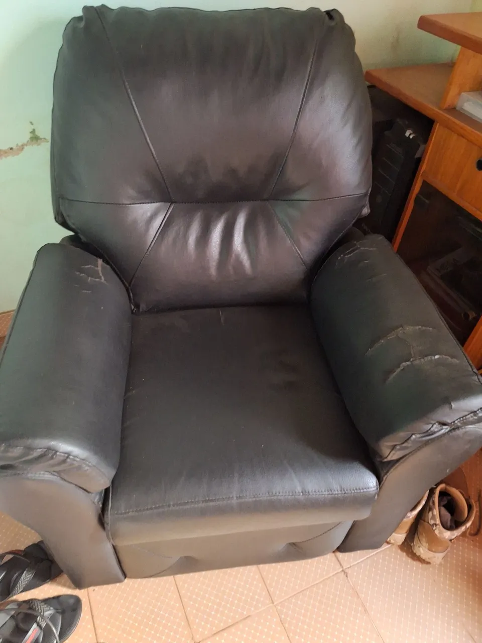 3 posições, funciona perfeito, estofamento perfeito sem desgaste, muito pouco uso portanto está bem firme, únicos defeitos é q por estar parada o couro trincou conforme fotos