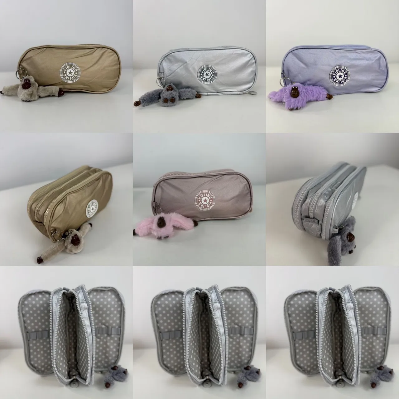 Estojo 3 zíper Metalizado Kipling ? Metalizado Impermeável Logo costurado Chaveiro de macaco Tam22x12x12