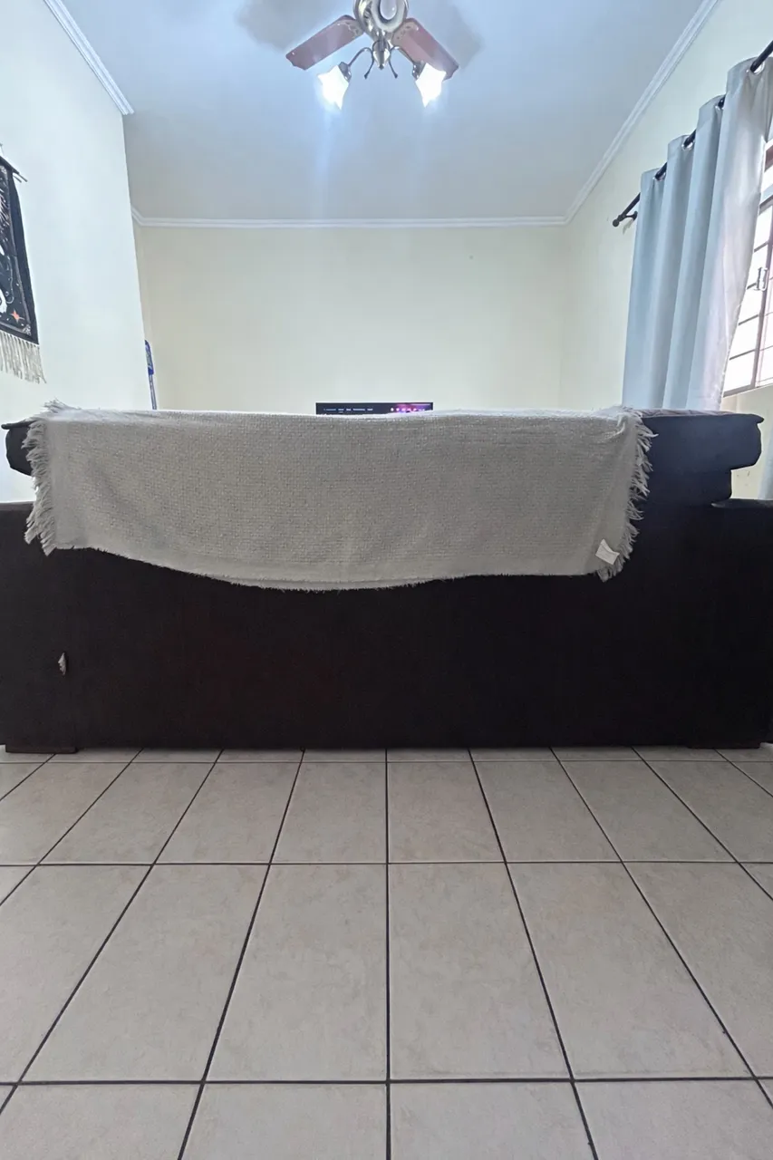 Sofá retrátil marrom, ideal para relaxar e aproveitar seus momentos de lazer com conforto e estilo. Design moderno e funcional. Com alguns detalhes na lateral esquerda, e em um dos assentos.