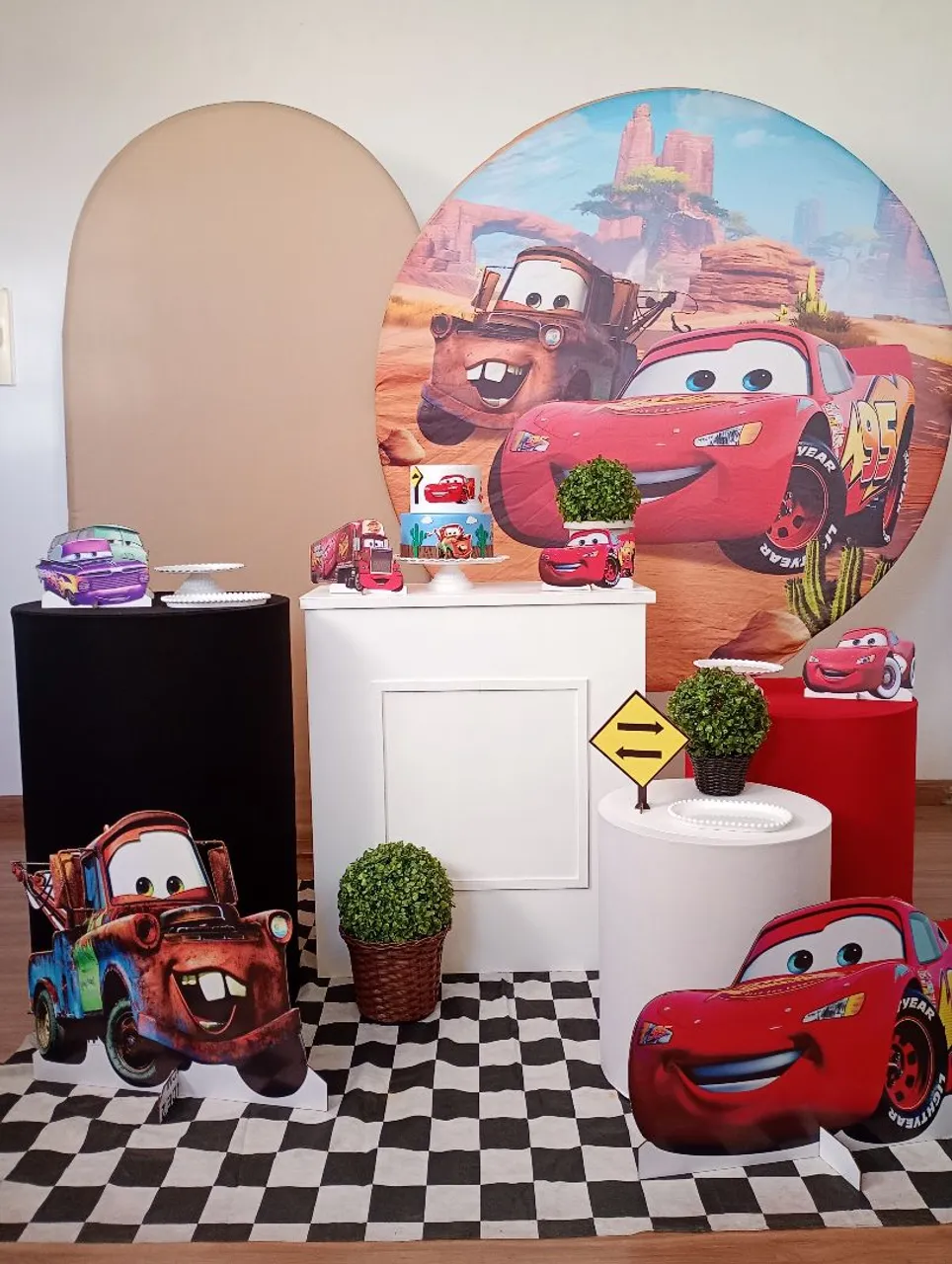 Decore sua festa com o tema Carros! O kit pegue e monte oferece praticidade e beleza para sua celebração. Transforme seu evento com a magia de McQueen e seus amigos!