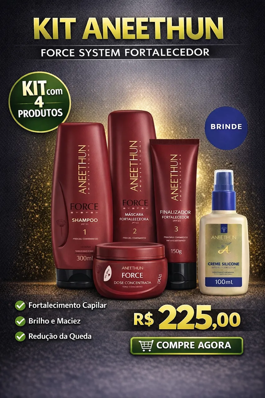 ? KIT ANEETHUN FORCE SYSTEM FORTALECEDOR - 5 PRODUTOS (COM BRINDE)