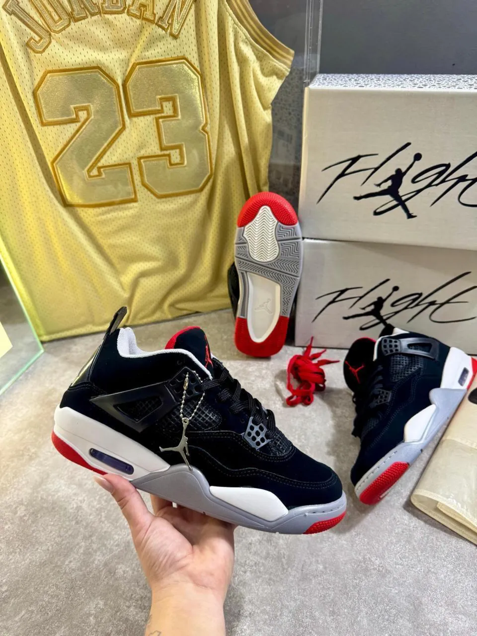 Destaque-se com o tênis Jordan 4! Design icônico em preto, branco e vermelho, garantindo estilo e conforto em cada passo. O clássico que nunca sai de moda, perfeito para elevar seu visual!
