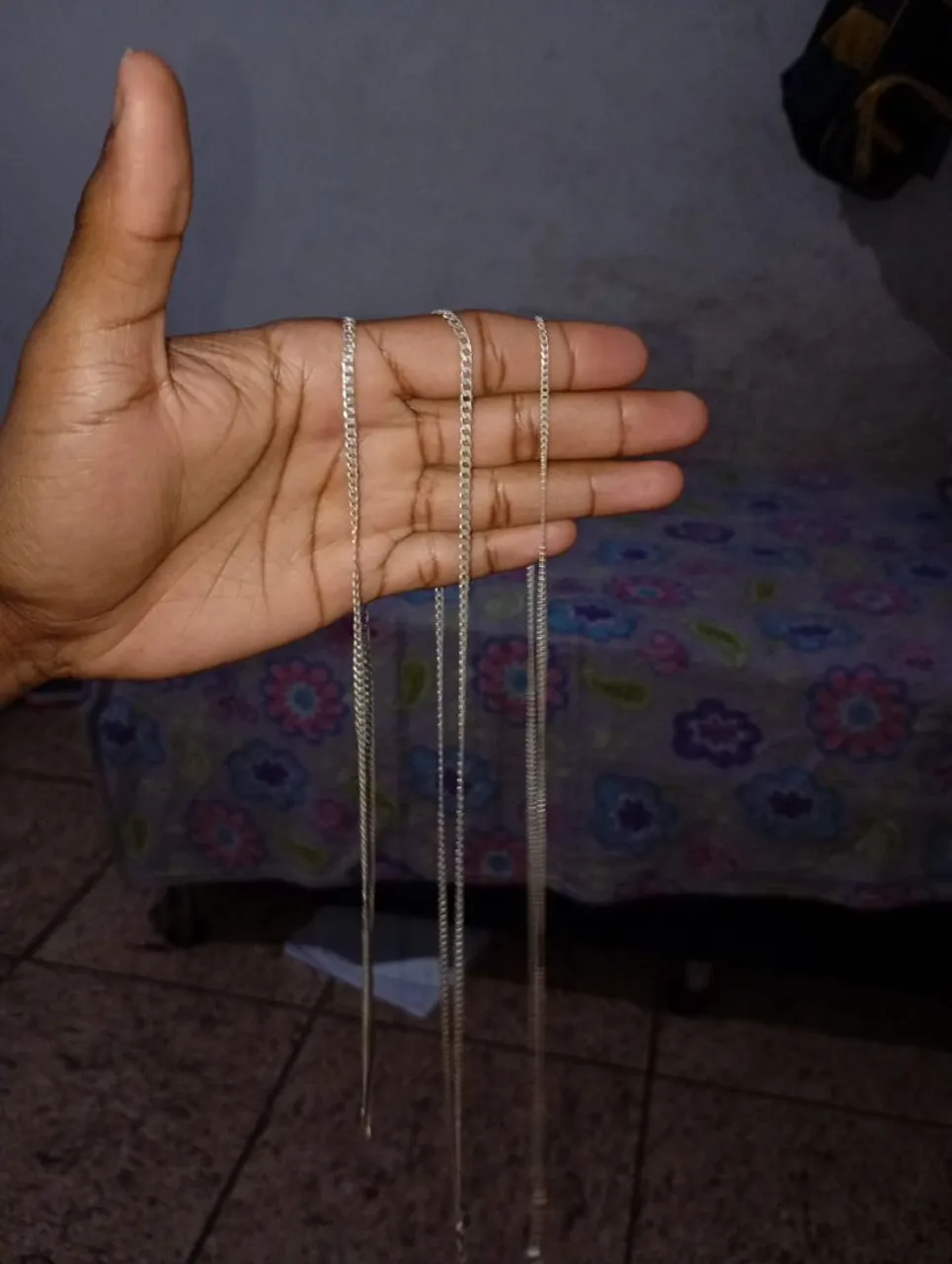 Vendo 3 correntes de prata 925,uma de 4 mm 70 cm, outra de 60 cm,e uma fininha com pingente. Por favor só fale se realmente estiver interessado.