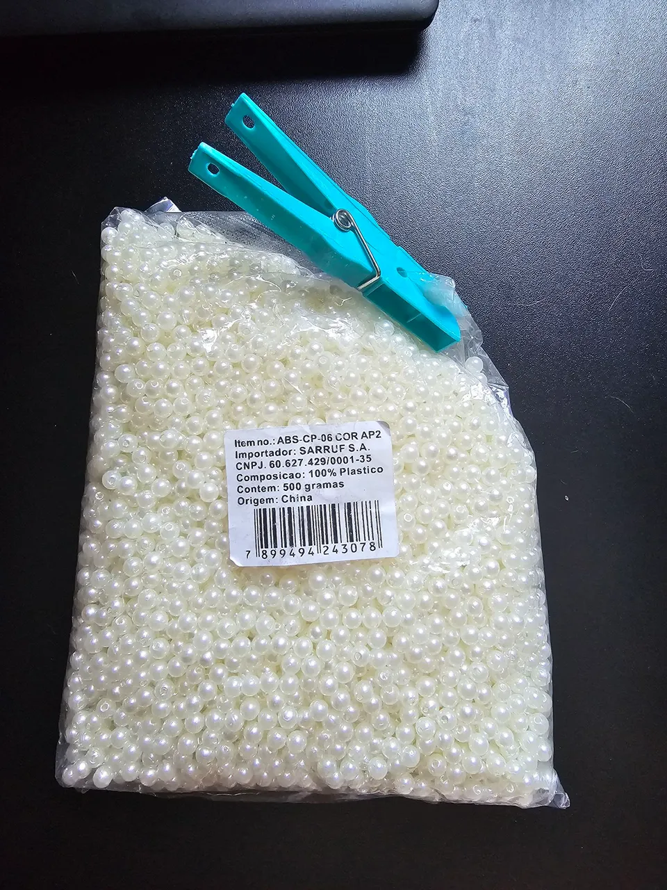 Pacote de perola 500 gramas, usei um pouco das pérolas mas o pacote esta quase cheio