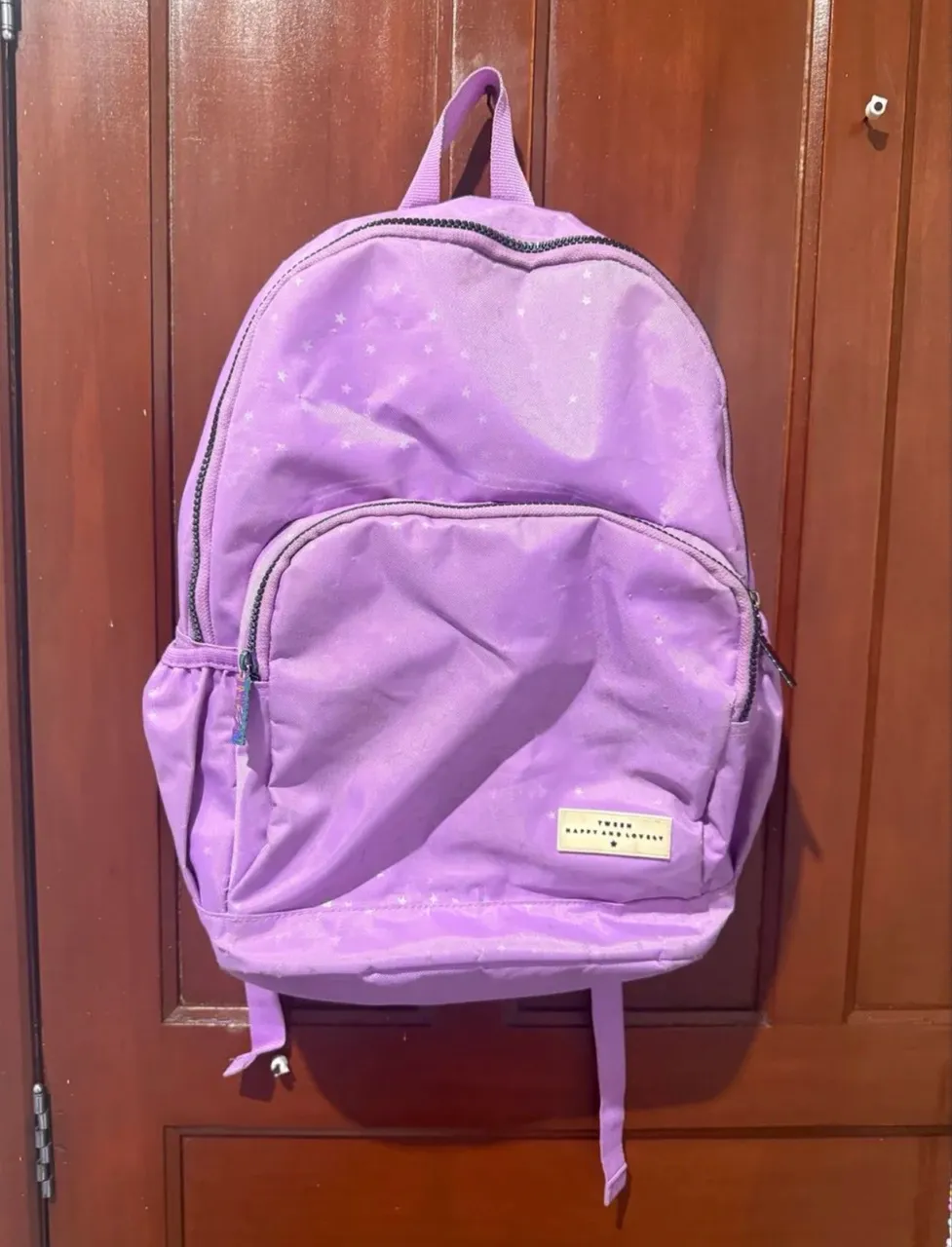 Linda mochila roxa com estrelinhas, perfeita para quem busca estilo e praticidade. Ideal para escola, passeios ou dia a dia. Leve seus pertences com charme e organização!