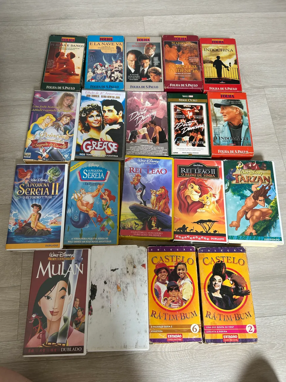 Obs: a fita dentro da capa da Mulan é uma fita de Ra tim Bum e na capa branca é uma fita original da Branca de neve