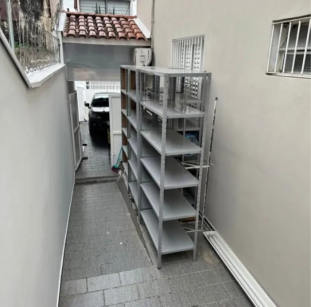 Estante de metal resistente e espaçosa, ideal para organizar seus objetos e otimizar espaços. Design moderno e funcional, perfeita para diversos ambientes.