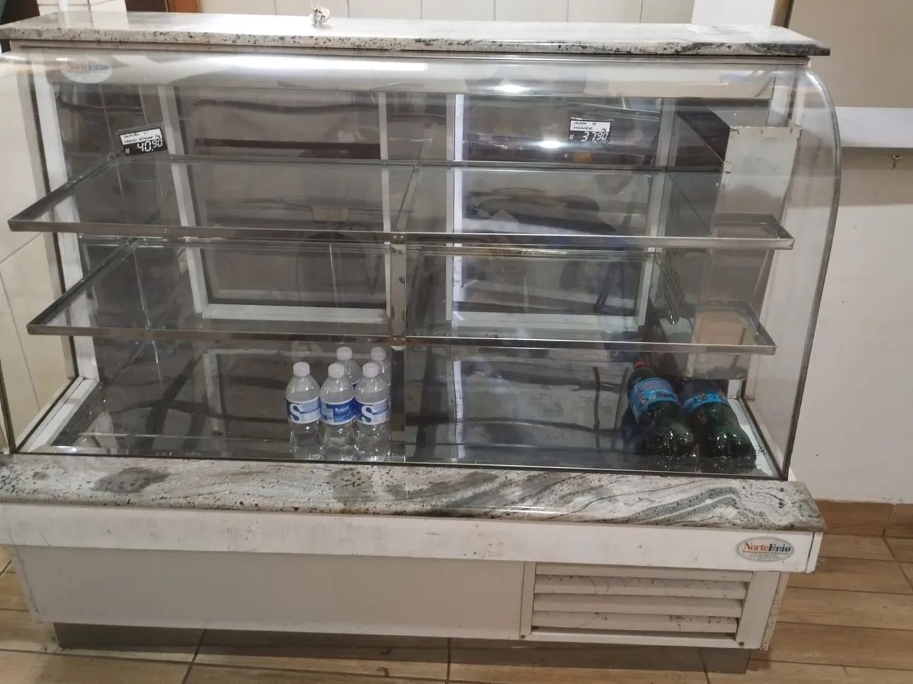 Ideal para expor bolos, doces, pois não gela bebidas adequadamente.