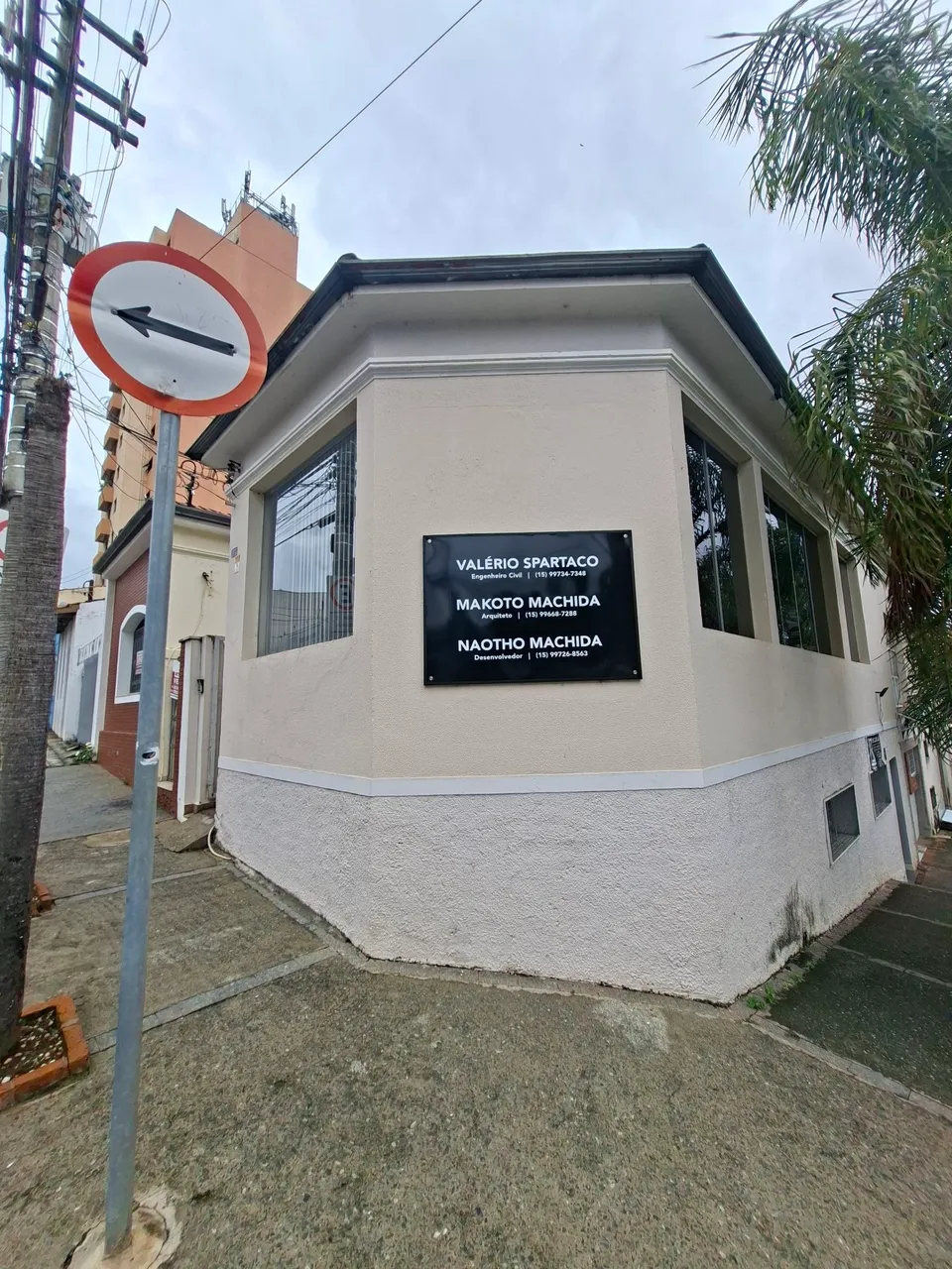 - Fachada: placa grande para anúncio da empresa, portão elétrico com interfone e campainha.